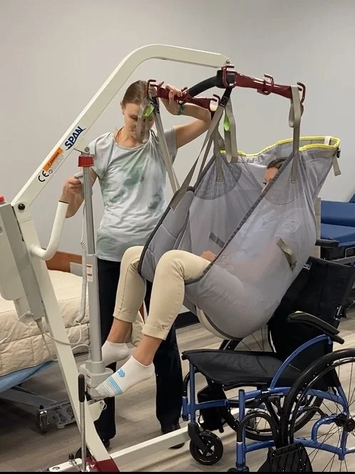 Caregiver training courses are offered in two levels, covering skills from basic handling techniques for bed mobility, ambulation and transfers, all the way up to use of mechanical lifts. Trainings can occur at your office location, or on-site with us at our training location for access to a variety of equipment including hospital beds, wheelchairs, walkers and patient lifts.